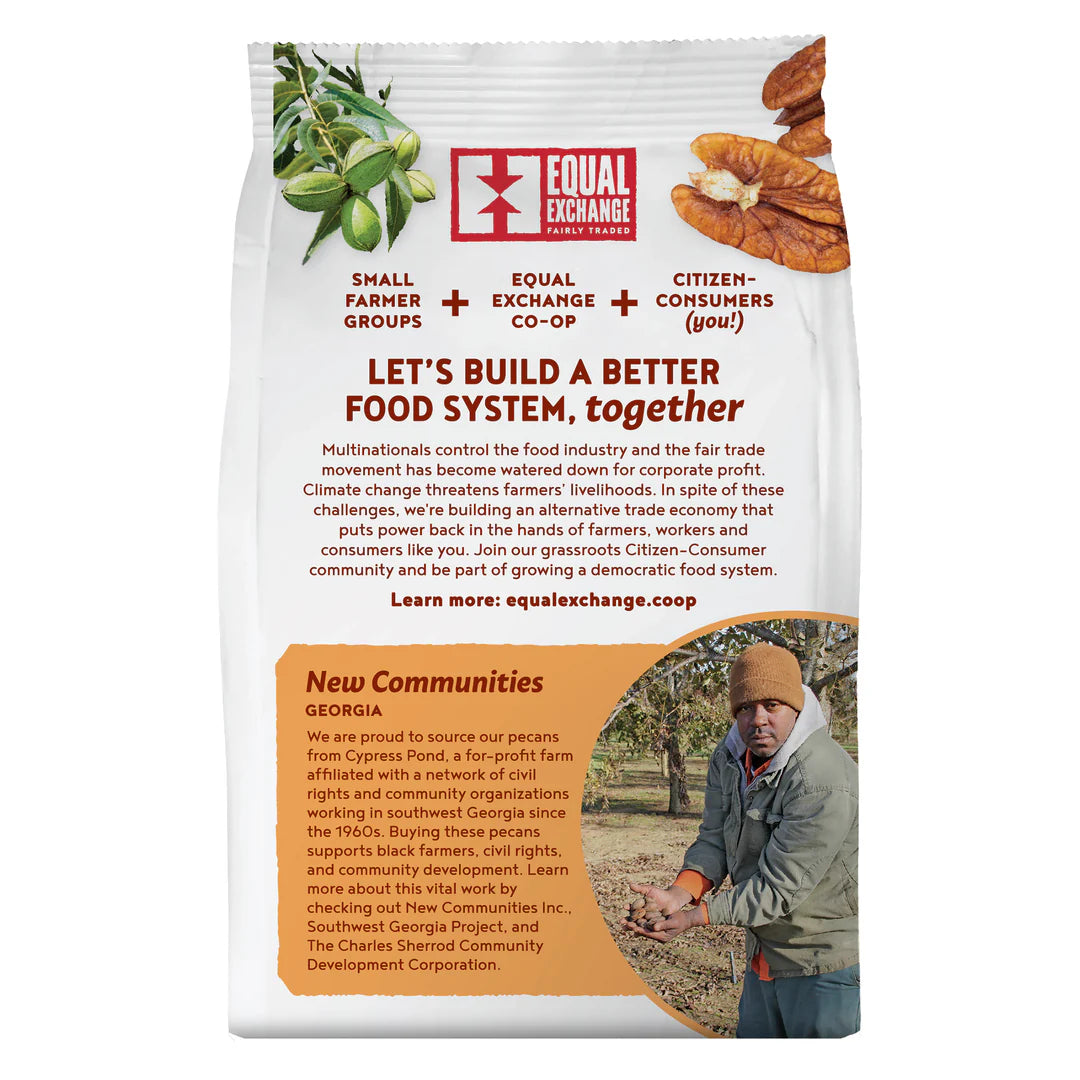 We’re proud to source our pecans from Cypress Pond, a for-profit farm affiliated with a network of civil rights and community organizations working in southwest Georgia since the 1960s. These pecans are grown on land once owned by the largest slave owner in Georgia, now owned by descendants of slaves. New Communities was founded in 1969 as a farm collective to provide a safe haven for black farmers, and became one of the original models for community land trusts in the United States. Buying these pecans supports black farmers, civil rights, and community development.